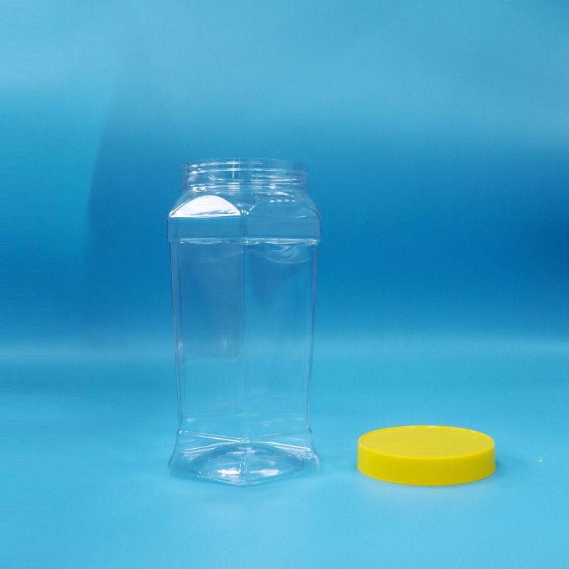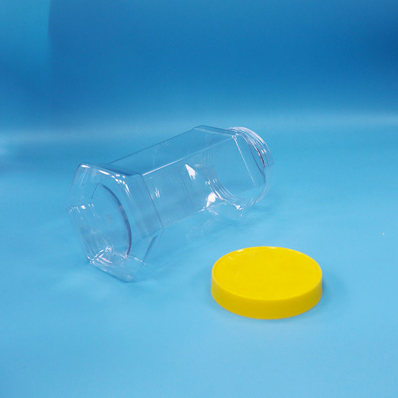 식품 등급 쿠키 캔디 육각형 모양 선명한 PET 식품 병 노란색 나사 모자