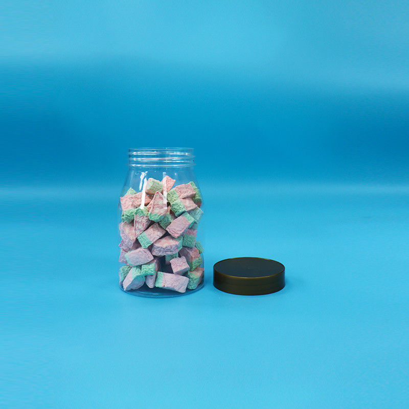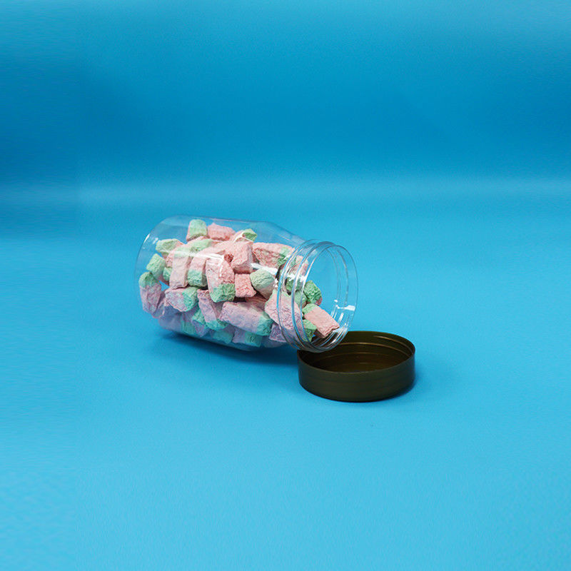 둥근 넓은 입 로딩 쿠키 사탕 식품 투명 PET 플라스틱 잔 나사 모자