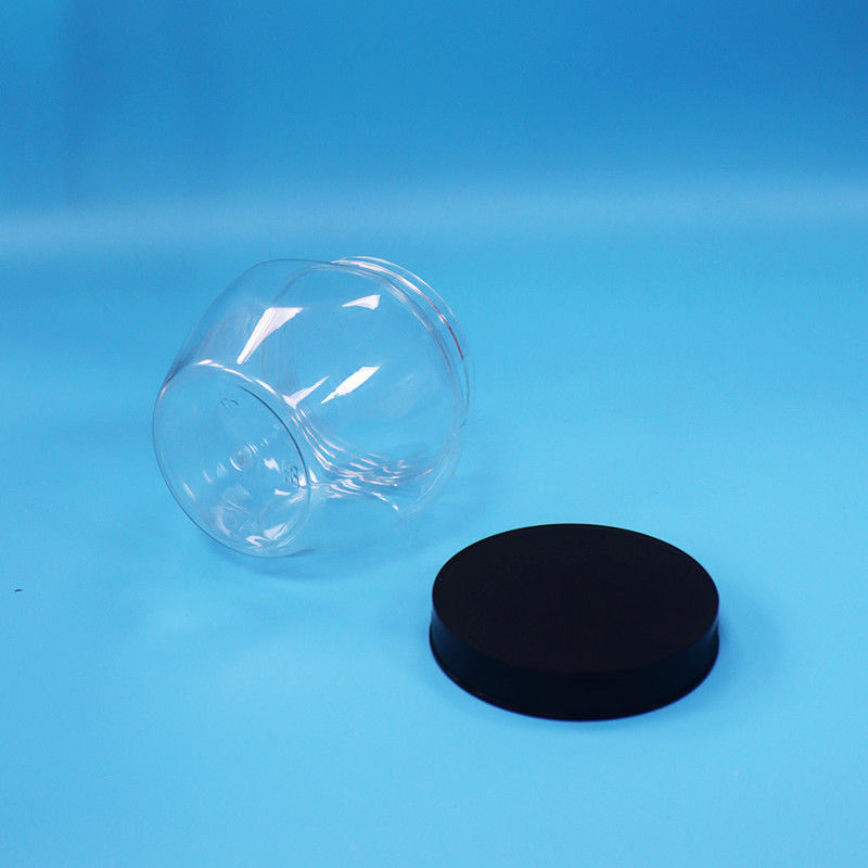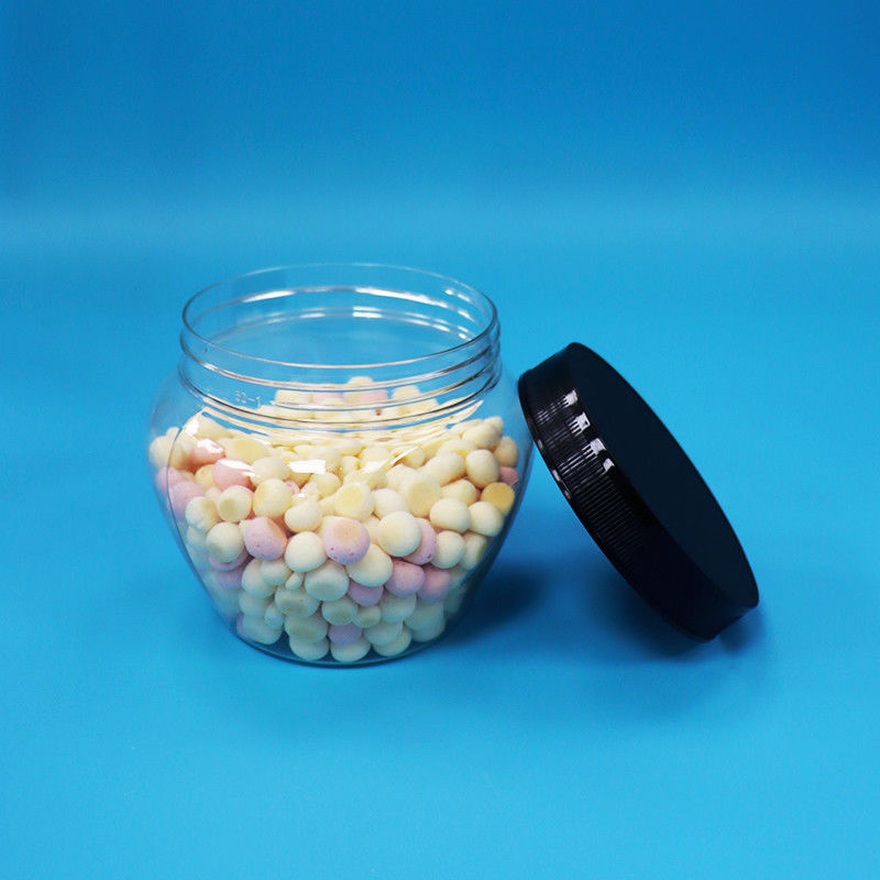 밀폐 투명 독특한 모양 플라스틱 PET 과자 식품 쿠키 병 검은 플라스틱 뚜??