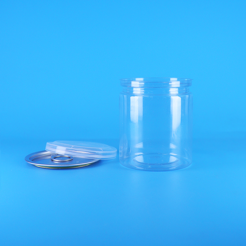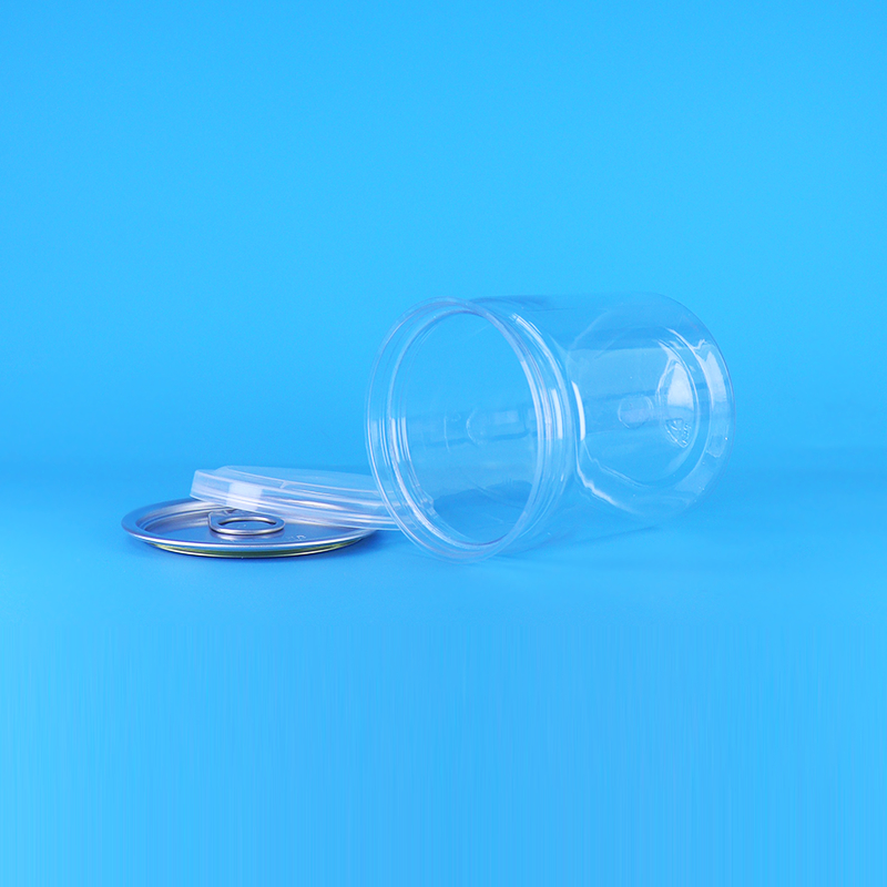 밀봉 가능한 투명 원형 아기 음식 노란 복숭아 PET 플라스틱 캔, 간편 개봉 뚜껑