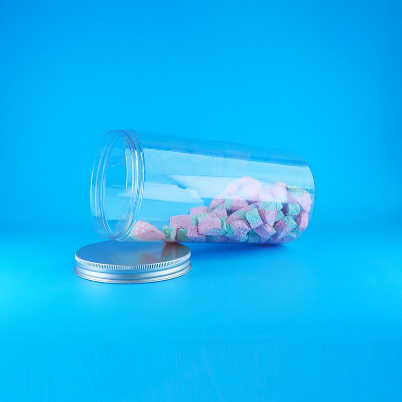 넓은 입 알루미늄 뚜?? 맑은 높은 둥근 플라스틱 건조 식품 쿠키 사탕 병