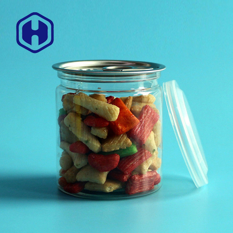 이 투명한 플라스틱 캔은 음식용 비어있는 PET 캔으로, 건조한 음식, 소스, 향신료 등을 보관하기에 적합합니다.그것은 쉬운 개방 끝을 가지고 있으며 원통 모양 또는 사용자 정의 될 수 있습니다.
