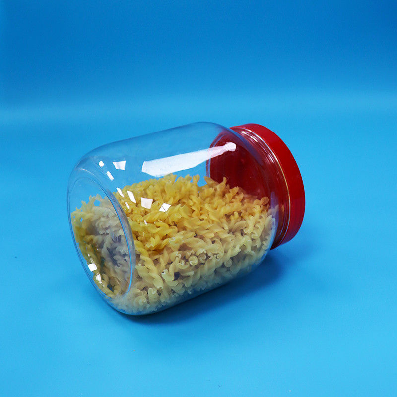캔디 쿠키 넓은 입 PET 식품 등급 투명 실린더 유리 잔 나사 빨간 뚜??